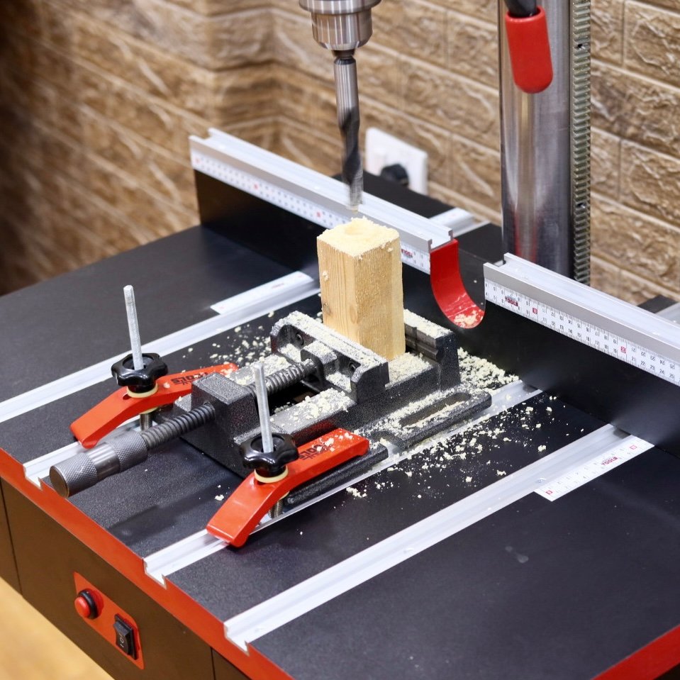هذا المنتج ملحق تي تراك مصنوع من الألومينيوم مطلي باللون الأحمر يستخدم لتثبيت الخشب علي بنك النجارة منتج مهم جداً لهواة النجارة والمحترفون